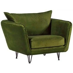 Le fauteuil Harry Kaki possède une structure en pin massif et une base en métal qui reflète un esprit industriel.