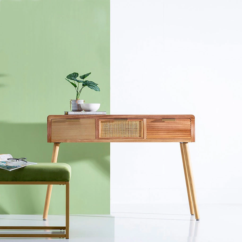 Cette console en bois et rotin s’intègrera parfaitement dans votre salon, votre entrée ou votre chambre.
