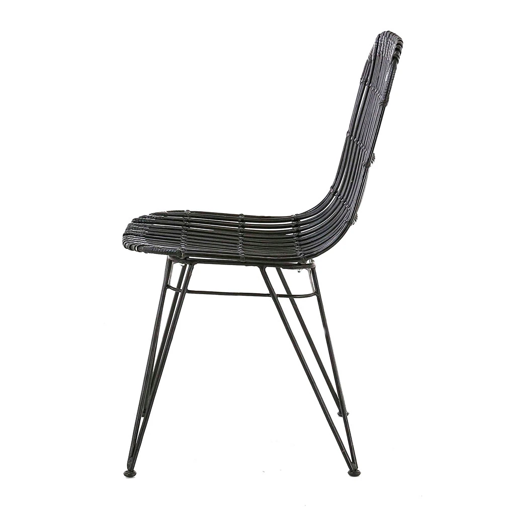 Cette chaise en rotin allie avec brio un design moderne, un piétement en métal noir tendance et des fibres naturelles. Ce mélange de matières leur permet d’intégrer des intérieurs aux styles variés.