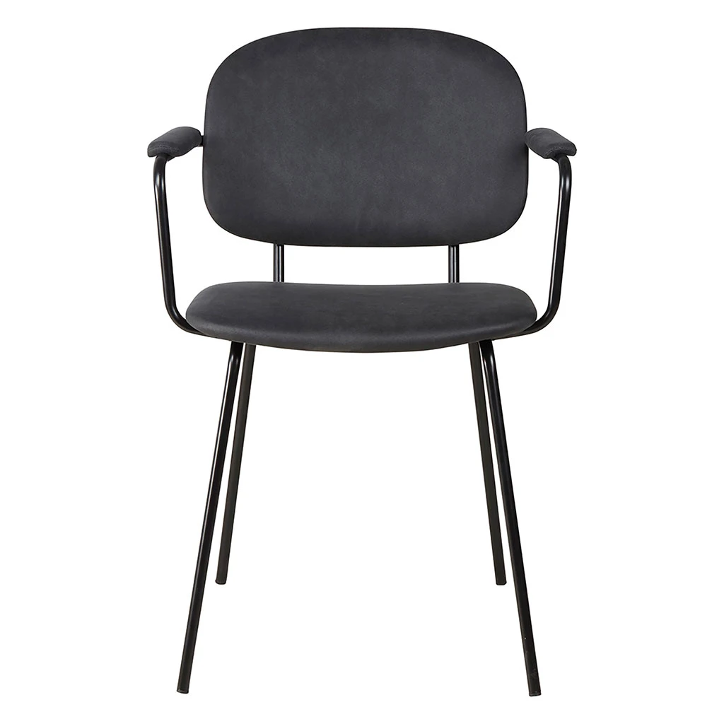 Ce fauteuil de style rétro avec son revêtement douillet effet daim noir est parfait dans votre bureau ou autour de votre table à manger.